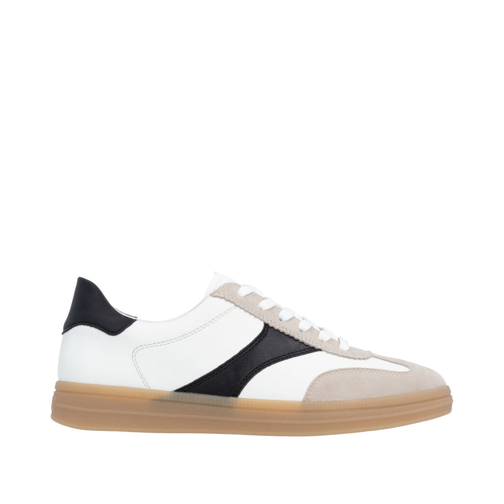 Remonte D2C01-83 Off White And Black Combination Leather Trainers