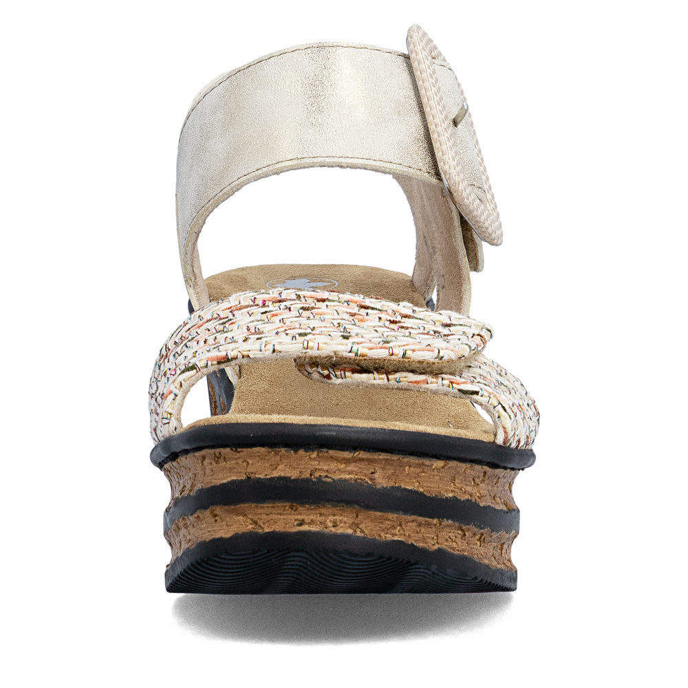 Rieker 68172-60 Beige Combination Adjustable Wedge Sandals