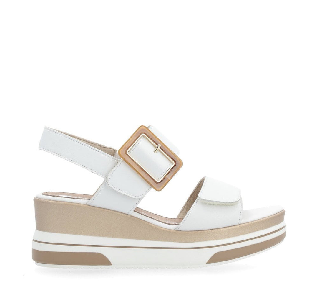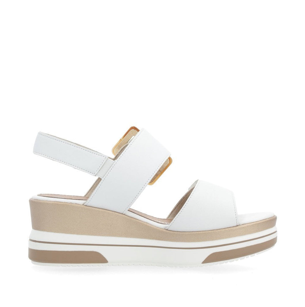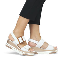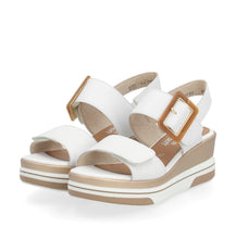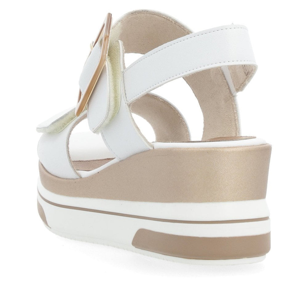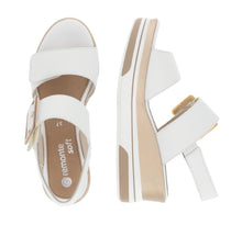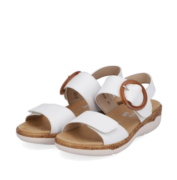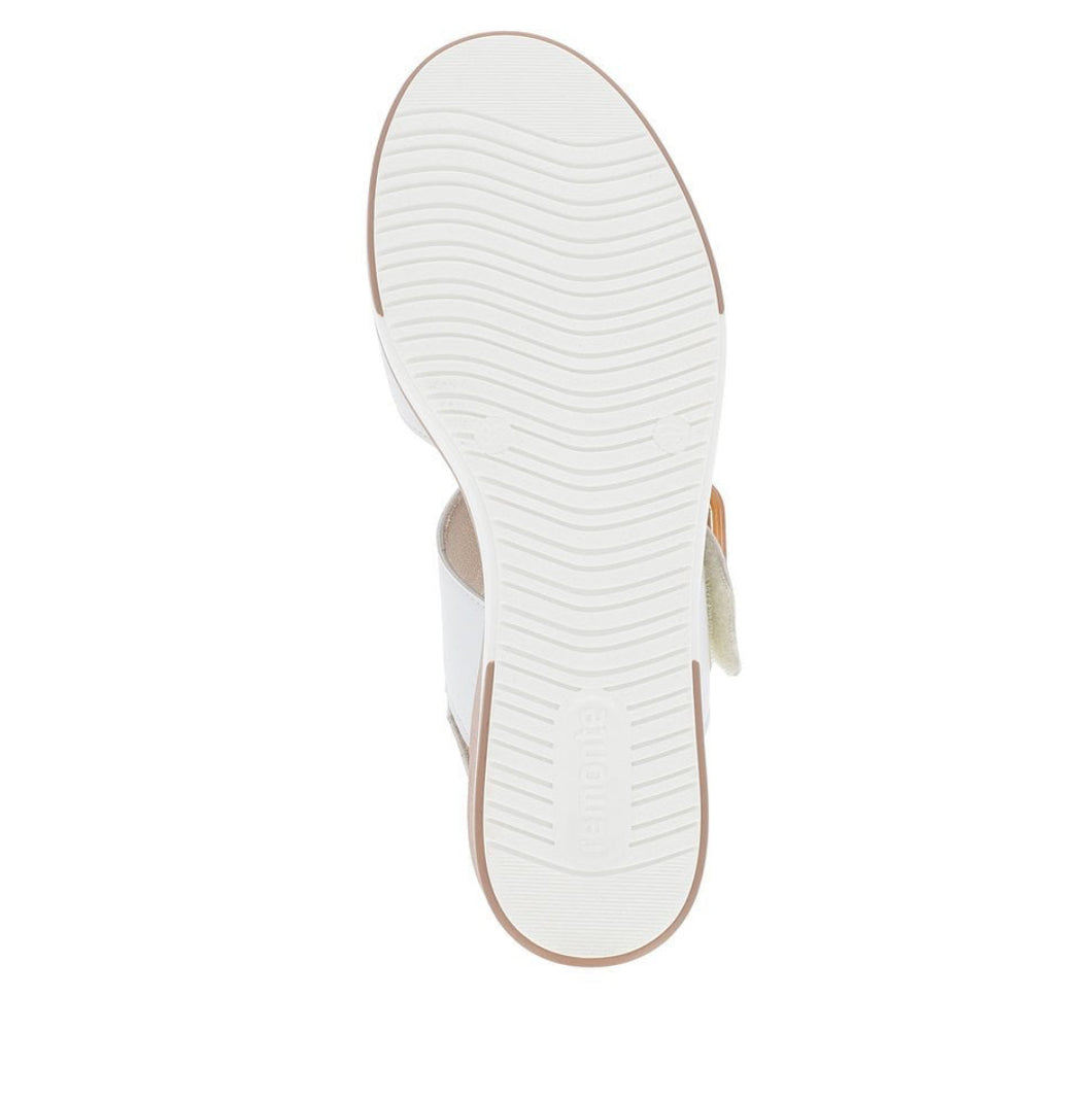 Classy chic! These wedge sandals made of smooth leather by remonte are the perfect everyday companion in pure white. Thanks to straps and a velcro fastener, the shoe adapts individually to the foot. The narrow heel strap provides additional support. The light and cushioning sole with wedge heel ensures a pleasant wearing sensation. In addition, the soft removable cover sole provides an extra portion of comfort. The shoes are lined with supple leather and breathable microvelour. No more searching for the perfect wedge sandals!