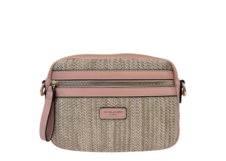 David Jones 7051-7 Rattan Camera Style Handbag With Coloured Trim(4 Colours)
