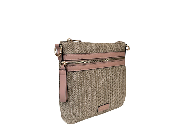 David Jones 7051-6 Rattan Effect Crossbody Bag With Coloured Trim(4 Colours)
