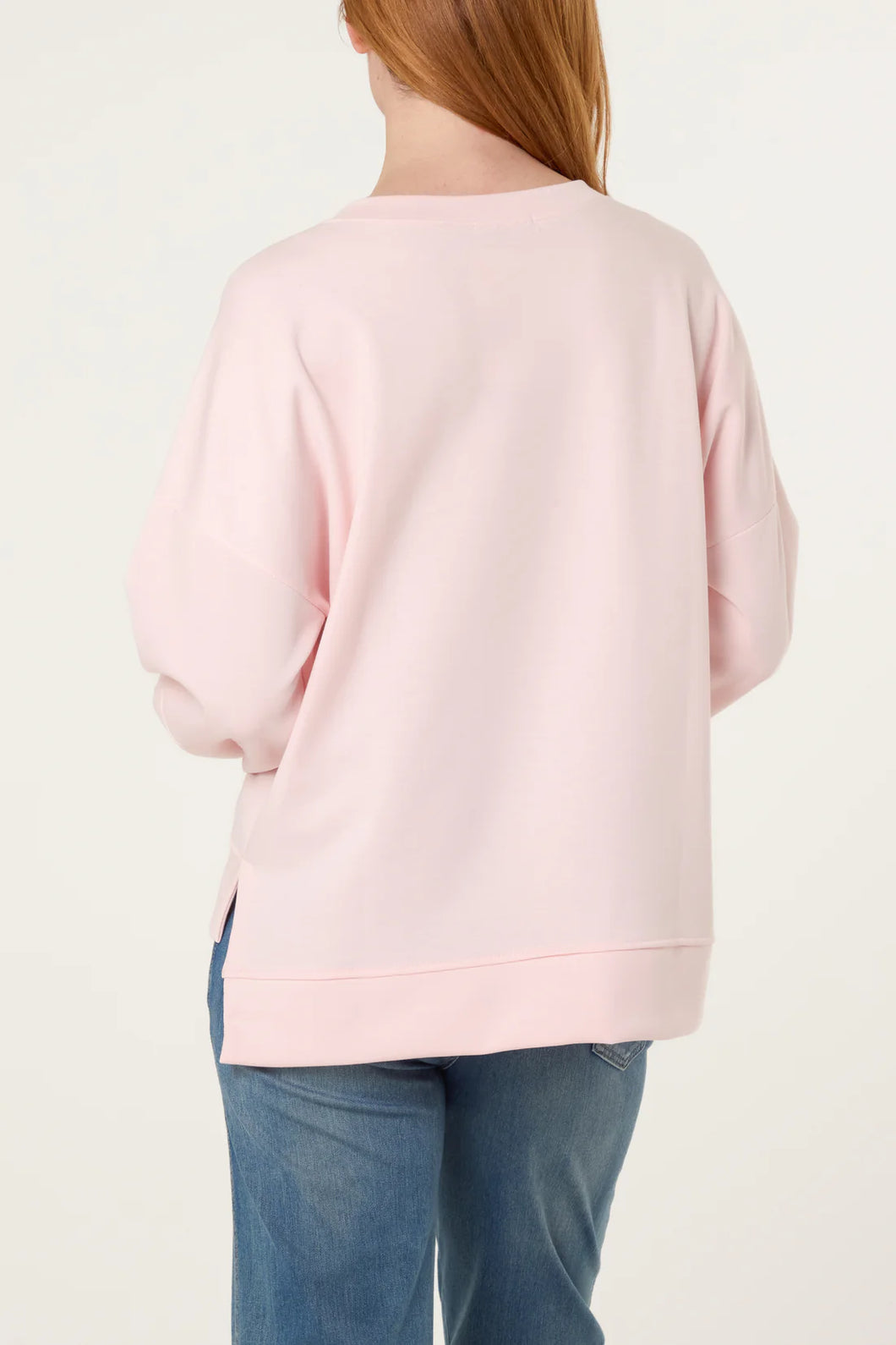 Amore Round Neck High Low Hem Sweatshirt Top (4 Colours)