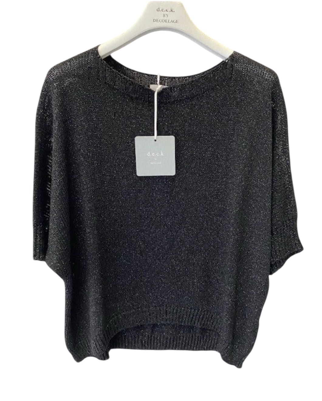 This dressy sparkle slash neck lurex knit jumper by D.E.C.K By Decollage is the perfect top to dress up or down!
