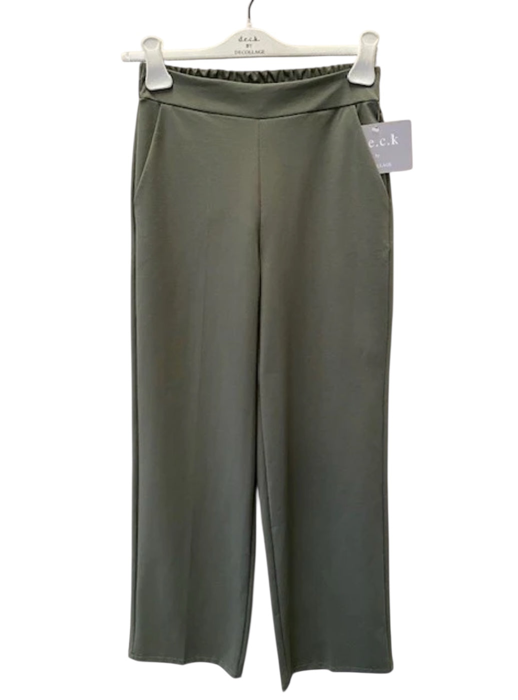 Fabulous punto milano fabric is a very soft and elastic jersey which feels beautiful on the skin. These D.E.C.K By Decollage 2435 wide leg pull on trousers with front pockets and an elasticated waist with flat tummy panel offer a very stylish look!