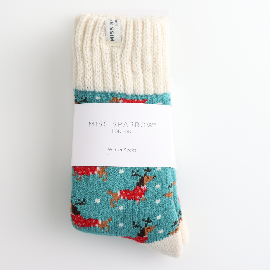 Miss Sparrow TSW032 Winter Xmas Sausage Dog Socks (2 Colours)