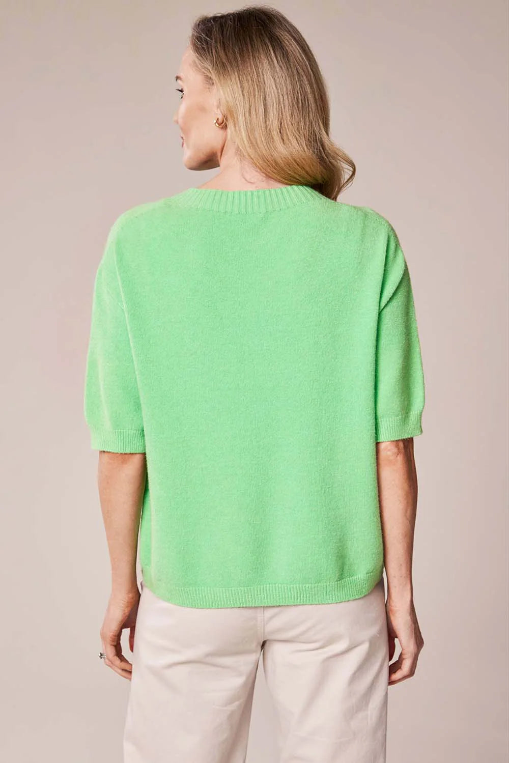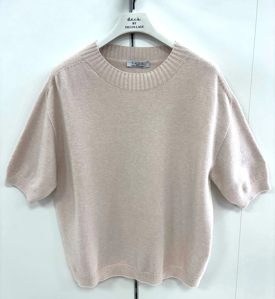 This beautiful D.E.C.K By Decollage new season plain round neck knitted short sleeve top is perfect to pair up with trousers or a skirt.