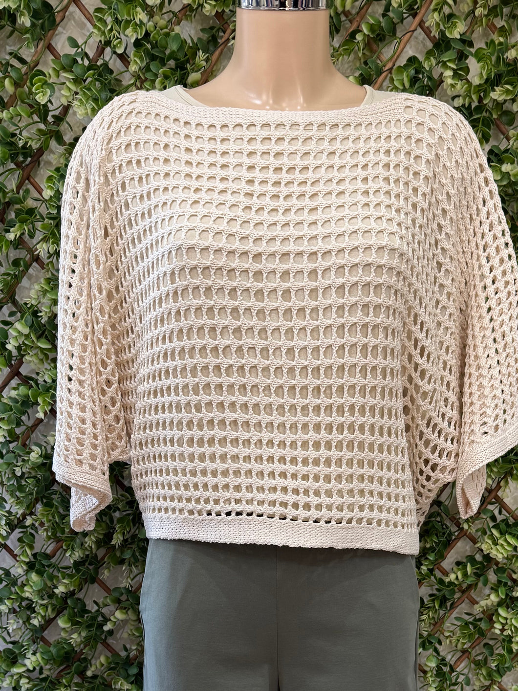 This is a perfect Layering top ideal to wear over a dress or vest top. This beautiful top has a crochet detail and elbow length sleeves.