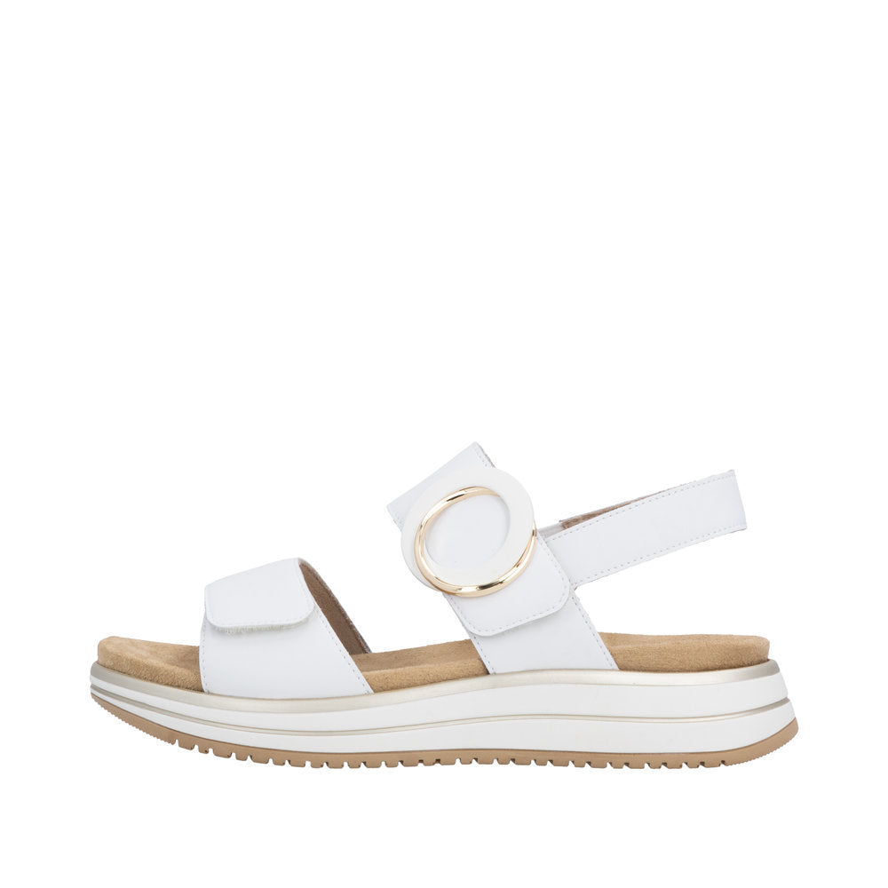 A trendy silhouette to add to your sandal collection, the Remonte Manila feature quality leather uppers sitting on a slight wedge heel sole, finished with eye-catching oversized buckle detail. The straps are both fully adjustable with velcro giving a perfect fit.