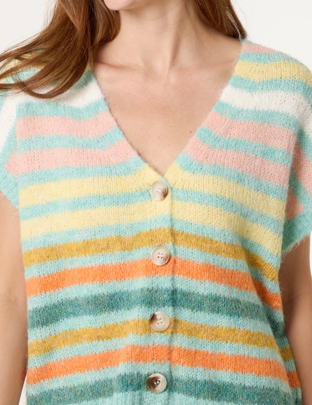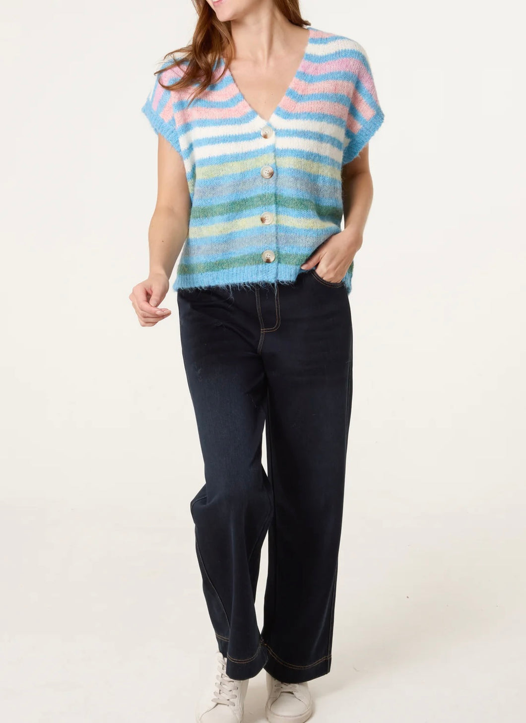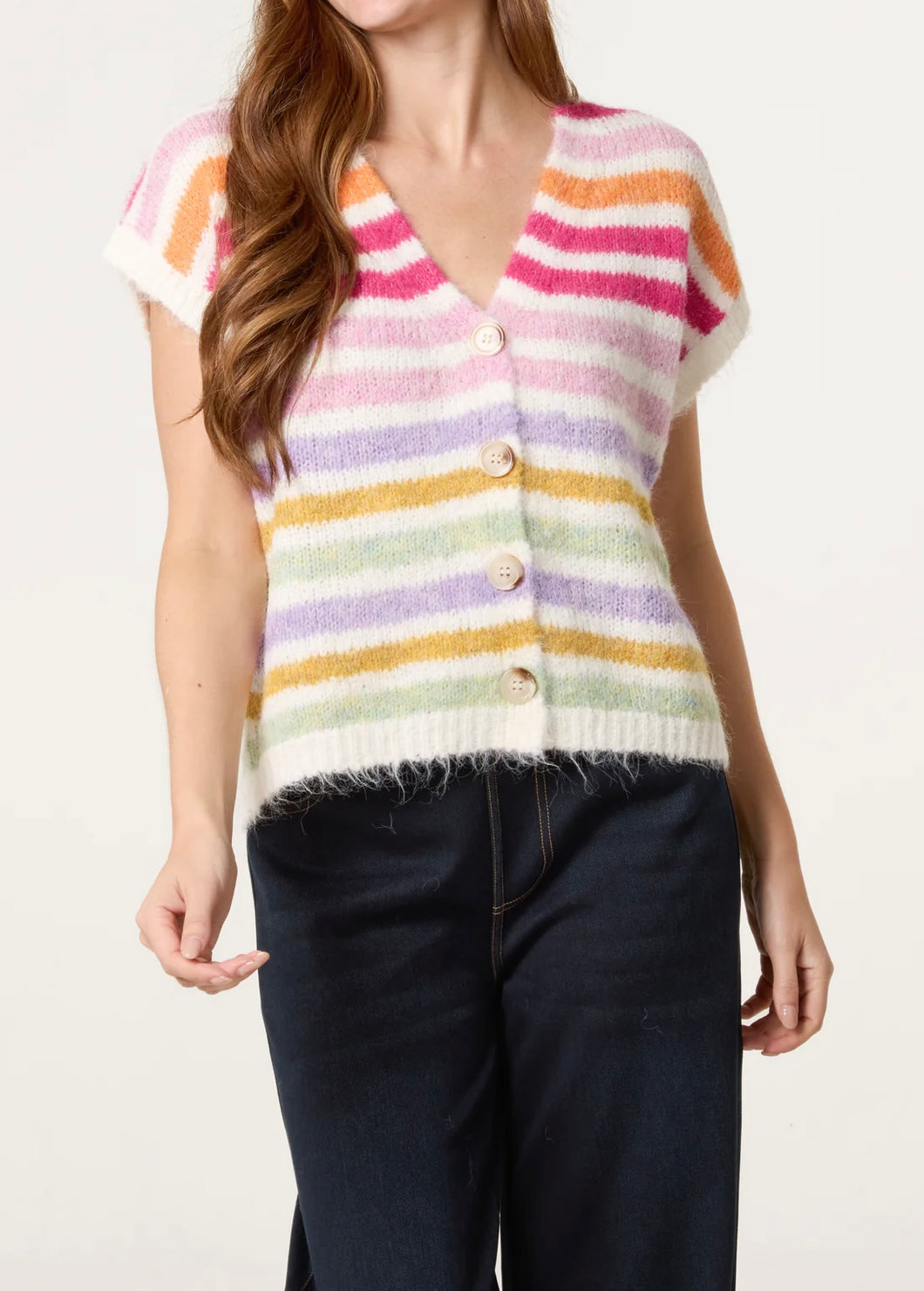 Striped Colourful Knit Vest Style Cardigan (3 Colours)