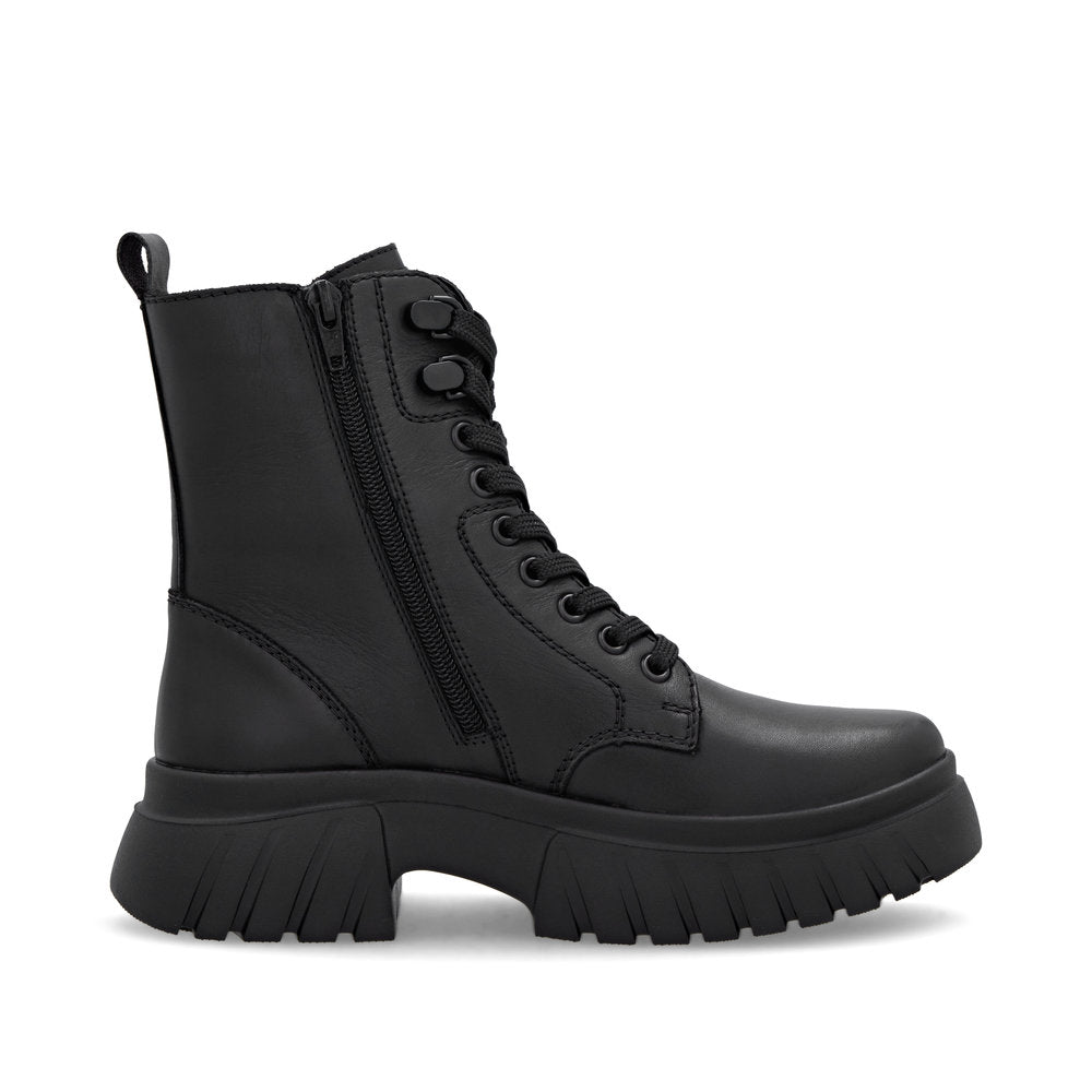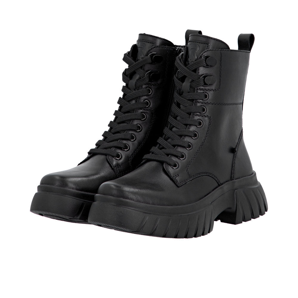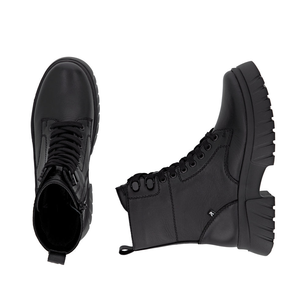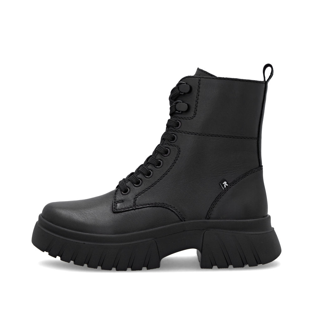 Rieker W1870-02 Minato Black Leather Lace-Up Ankle Boots