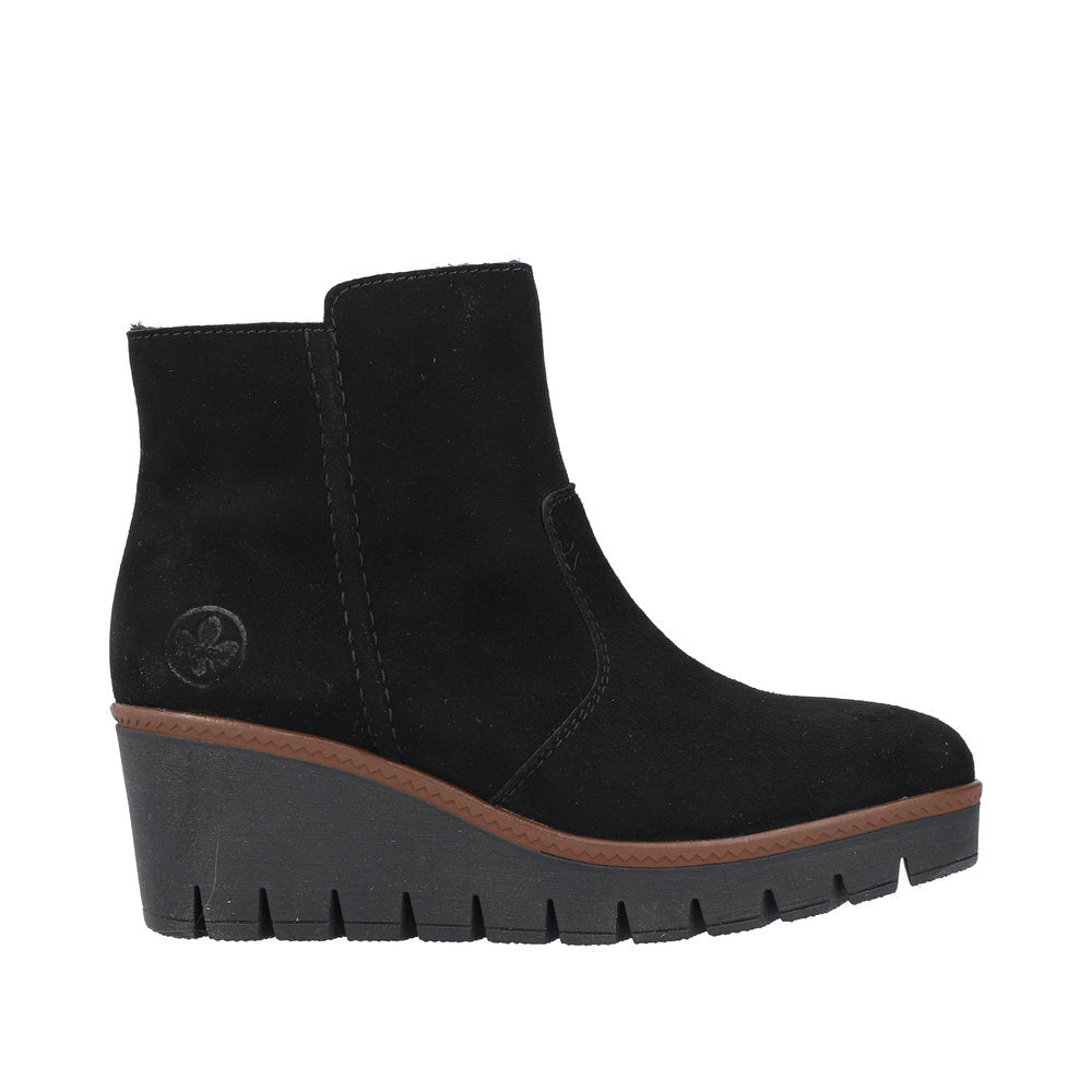 Rieker Y5065-00 Black Suede Leather Wedge Ankle Boots