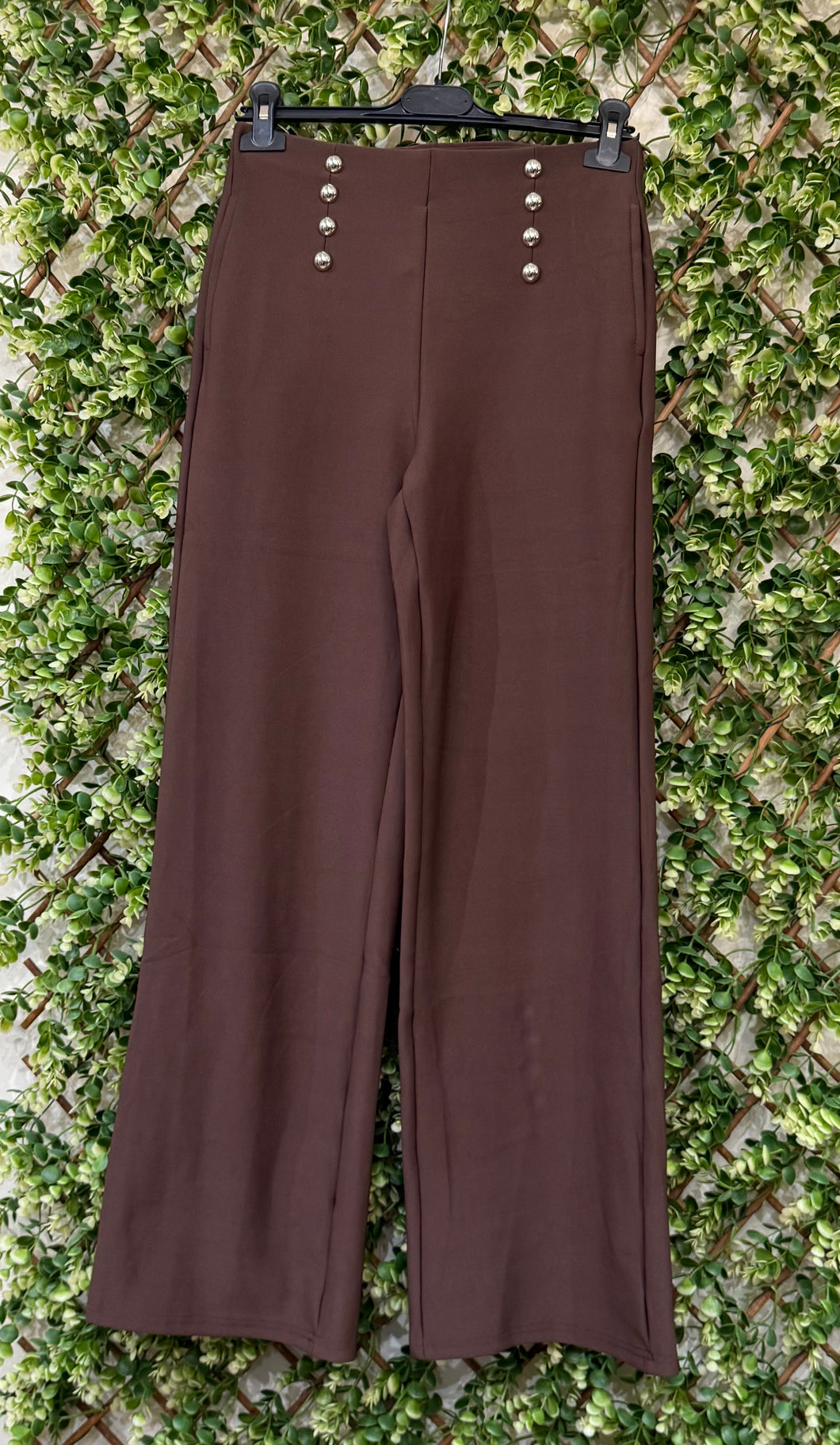 Yu & Me Plain Botton Detail Super Stretchy Wide Leg Trousers (3 Colours)