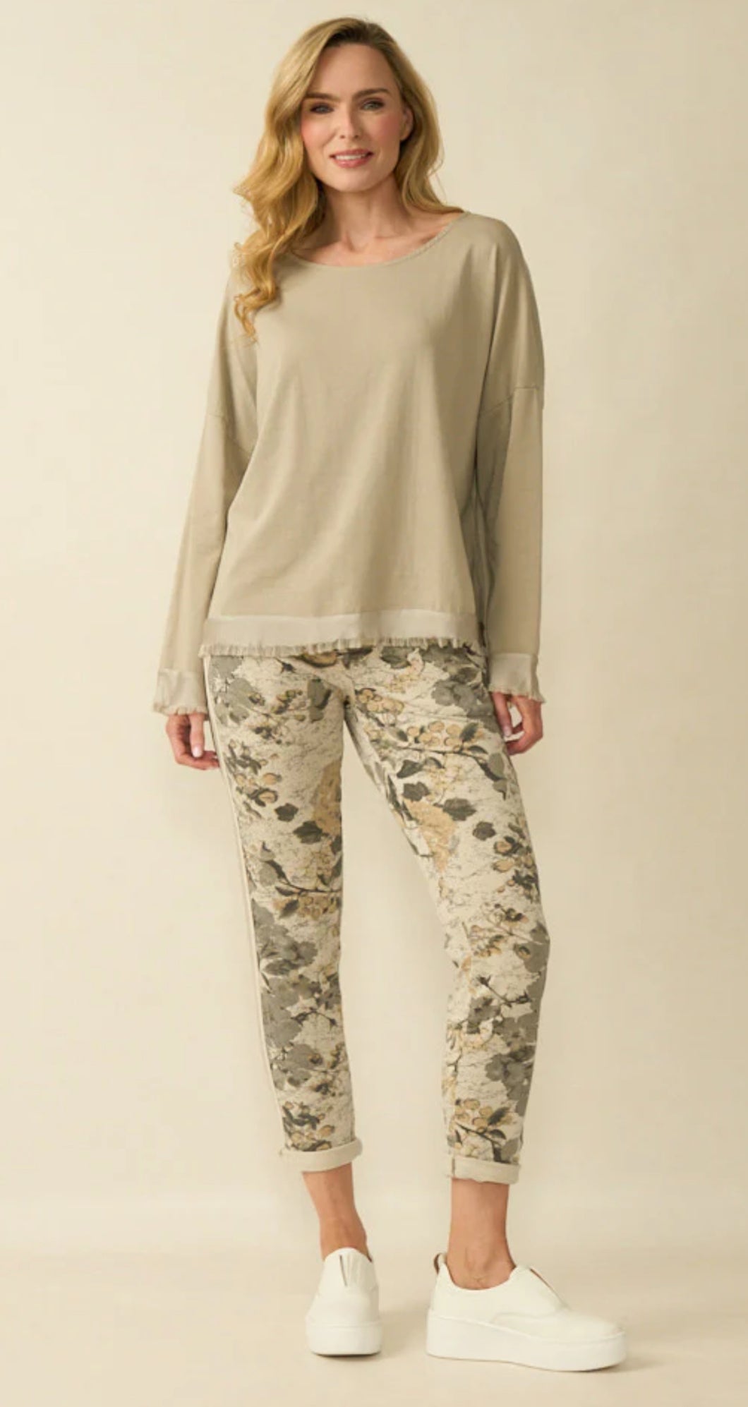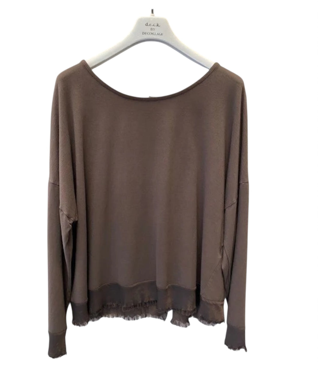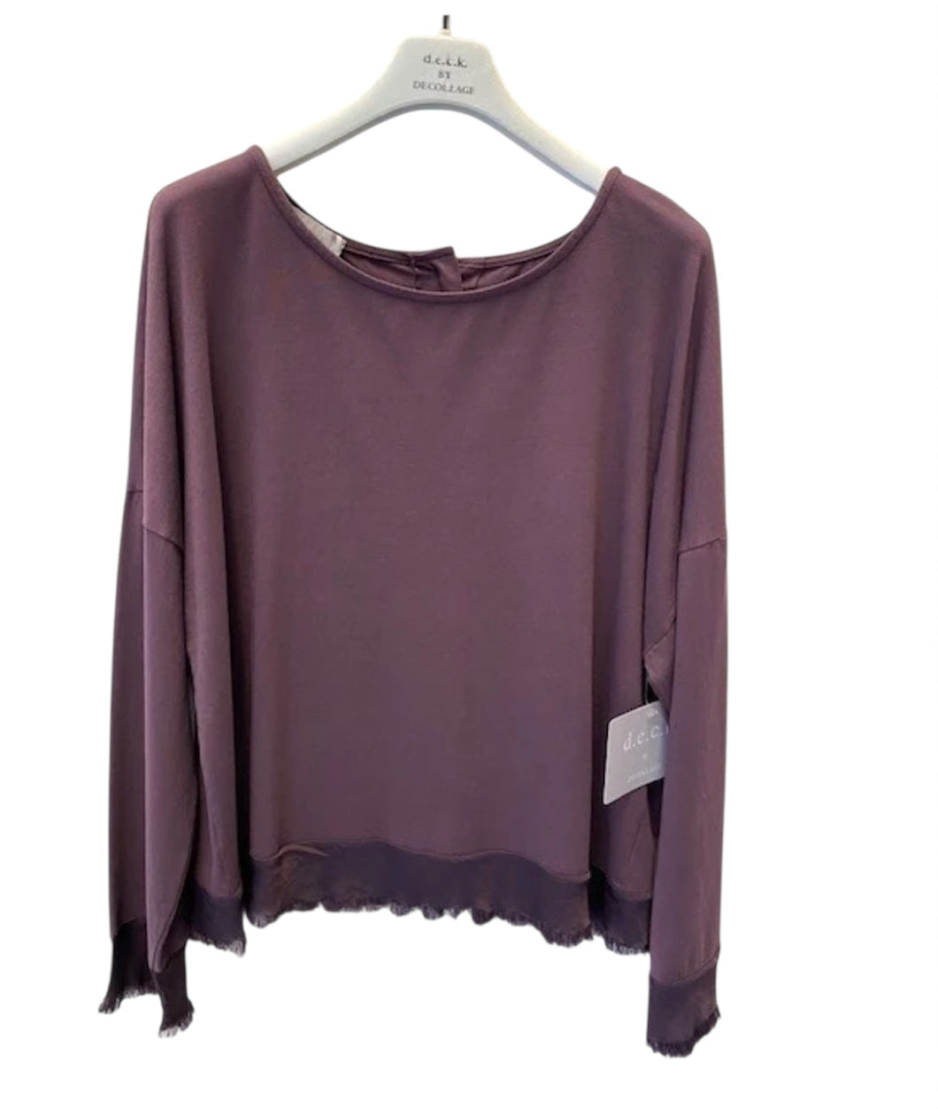 D.E.C.K By Decollage 723606 Plain Stretchy Long Sleeved Satin Trim Top offers a round neck with a soft cotton blend fabric and a satin trim to the hem and sleeve. This classic essential has a button detail at the back.
