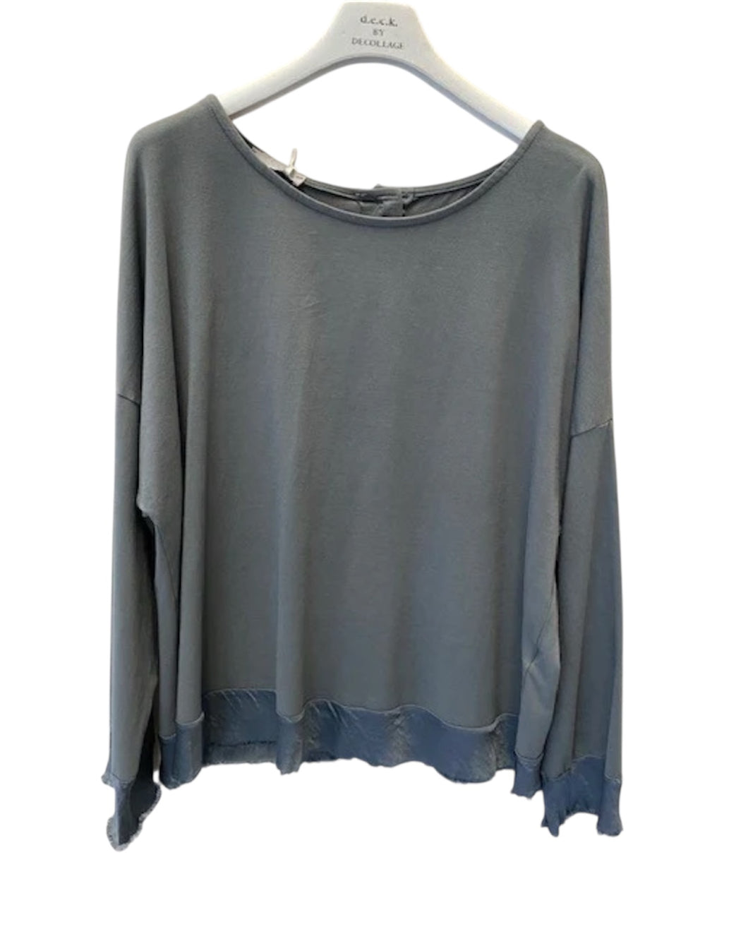 D.E.C.K By Decollage 723606 Plain Stretchy Long Sleeved Satin Trim Top (6 Colours)