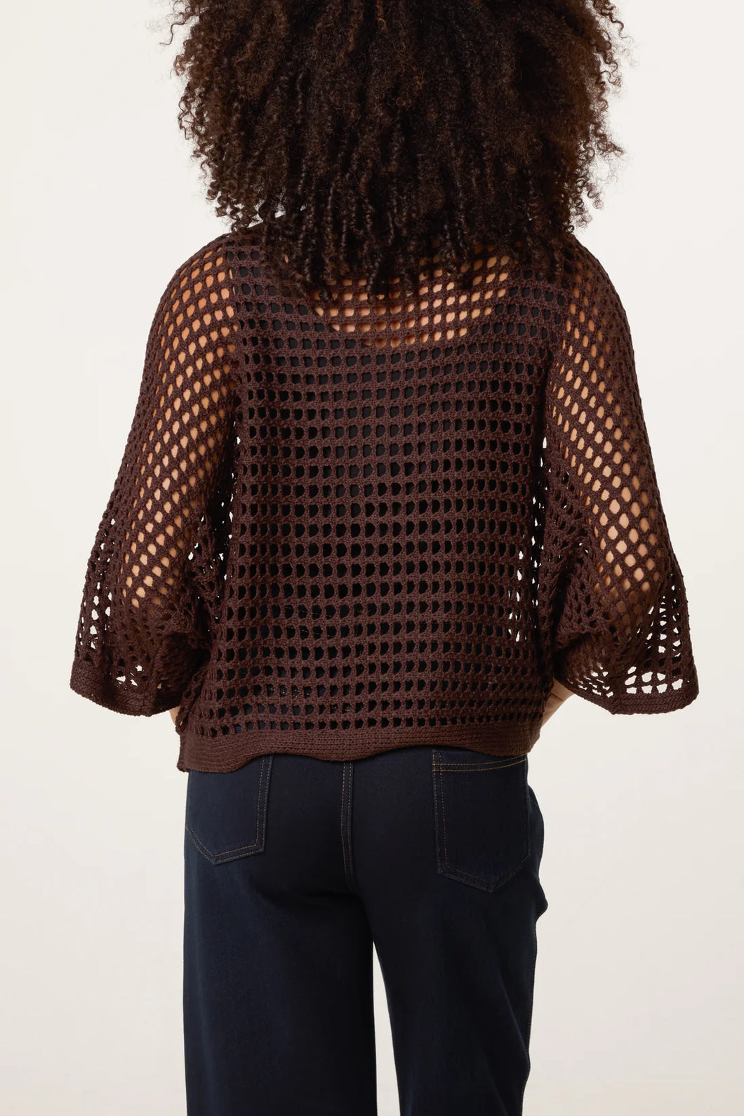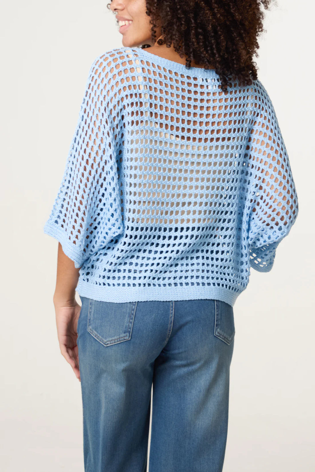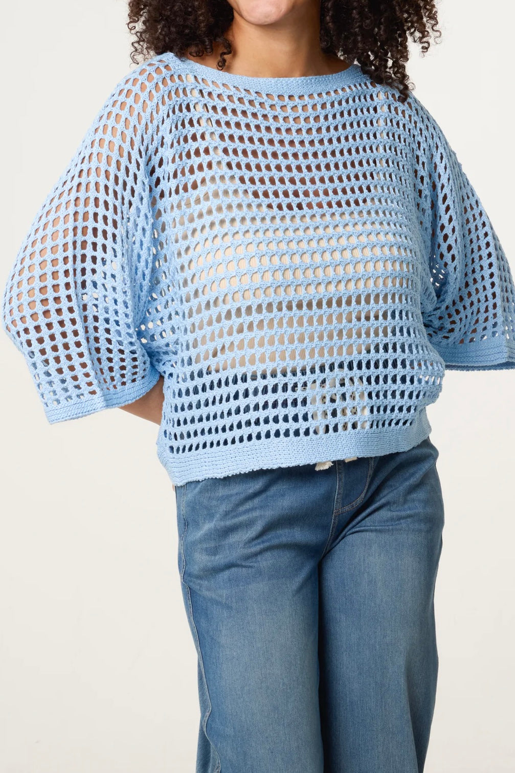 This is a perfect Layering top ideal to wear over a dress or vest top. This beautiful top has a crochet detail and elbow length sleeves.