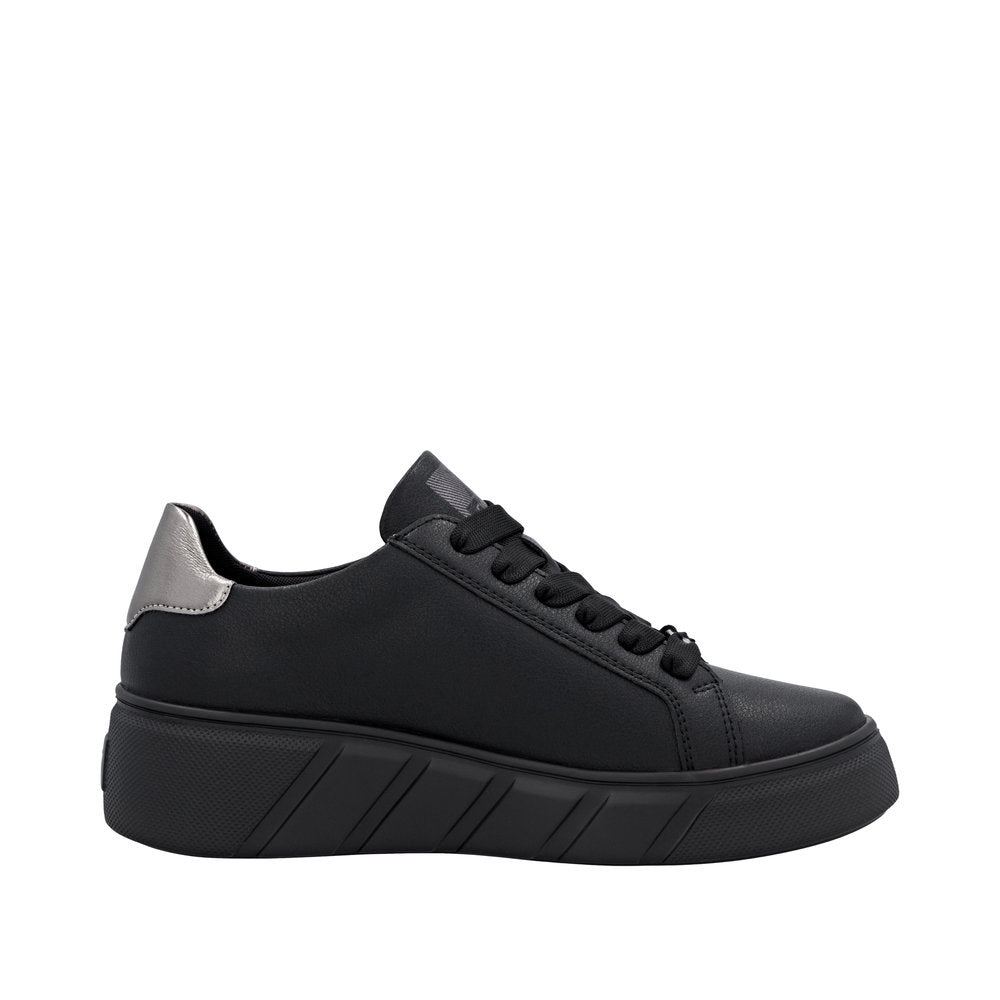 Rieker W2605-02 Rock Black Leather Flatform Trainers With A Black Sole