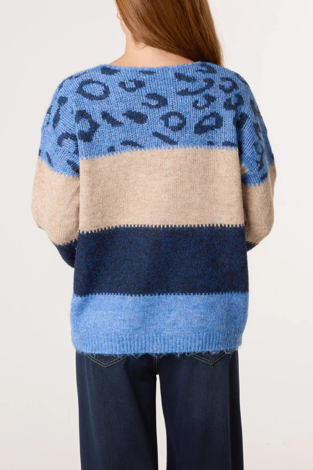 Animal Print Colour Block Knitted Jumper (2 Colours)