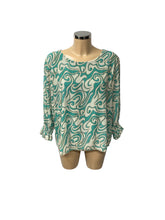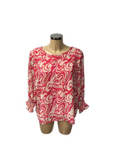 This gorgeous multi coloured print blouse is fully lined and comes in unique colours. It has a flattering round neck with long sheer 3/4 sleeves and elasticated frilled cuffs, this blouse is ideal for dressing up or dressing down .
