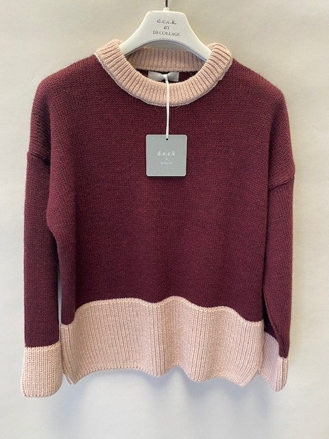 D.E.C.K By Decollage 5009-02 Round Neck Colour Block Knit Jumper (2 Colours)