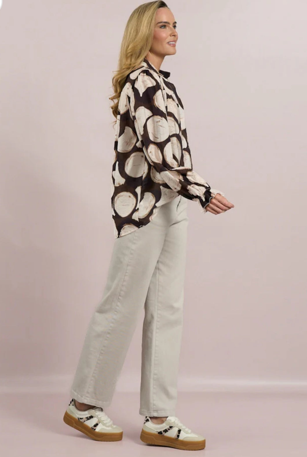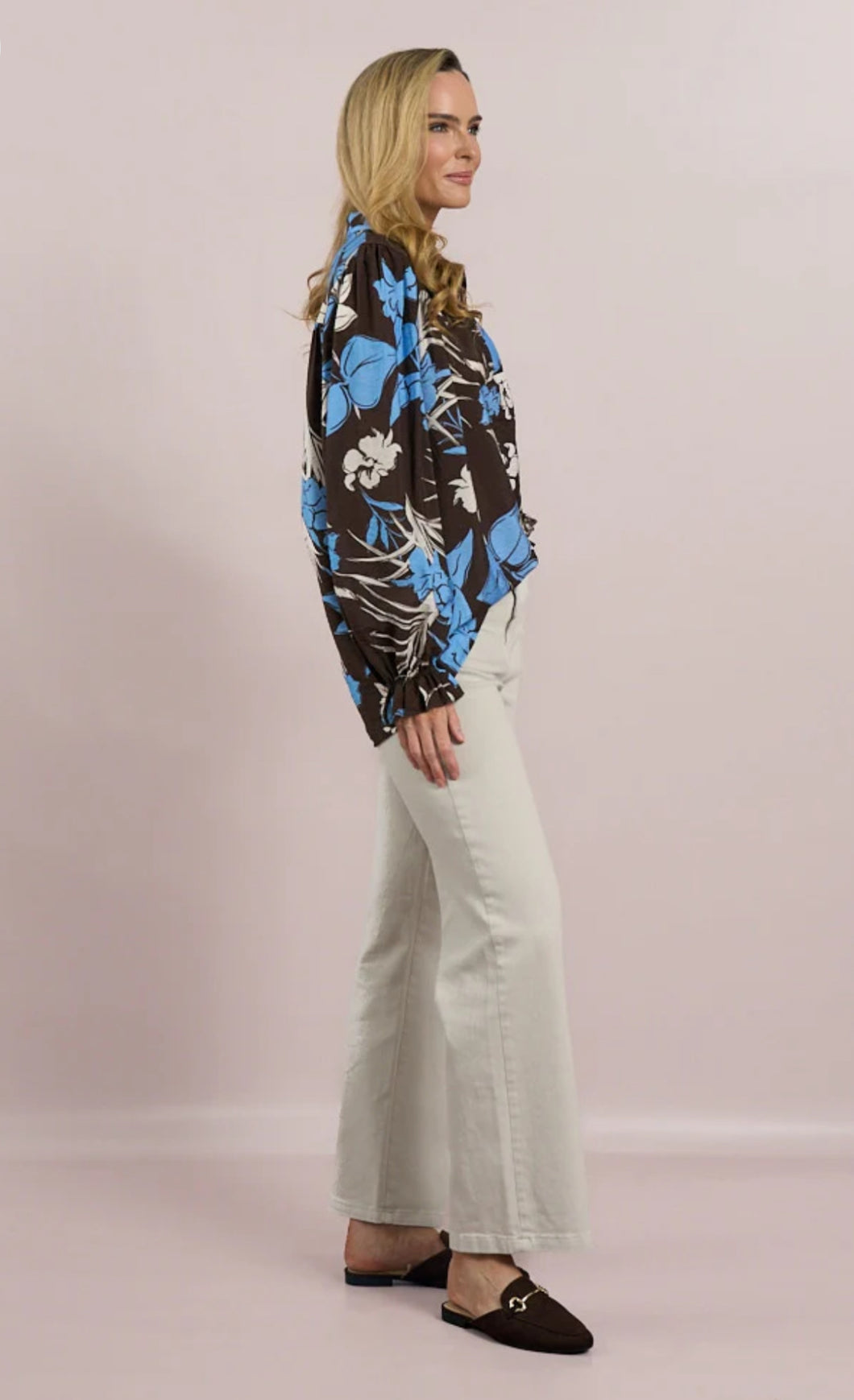D.E.C.K By Decollage MC18022 Print Blouse offers a relaxed yet refined fit with a striking print detail, long sleeves, round collar and a high low hem.