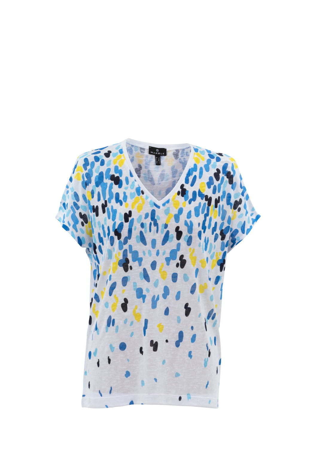 Marble 6947 Fine Knit Multi Scatter Print V-Neck Short Sleeved Top (2 Colours)
