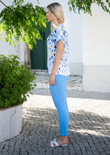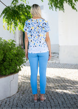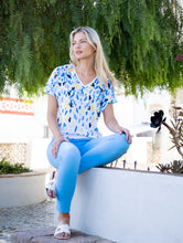 This Marble 6947 fabulous fine knit scatter print V-Neck summer weight short sleeved top is a style staple for many wardrobes. It is created to give you a flattering silhouette, and can be dressed up or down and worn with jeans, skirts or wide leg trousers for various different styles and looks.