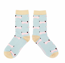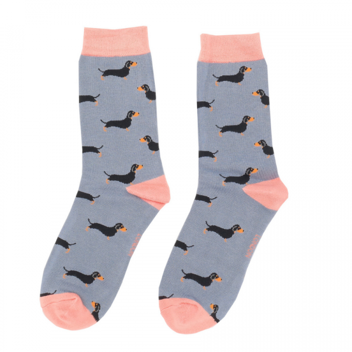 Miss Sparrow Bamboo Powder Blue Sausage Dogs Socks