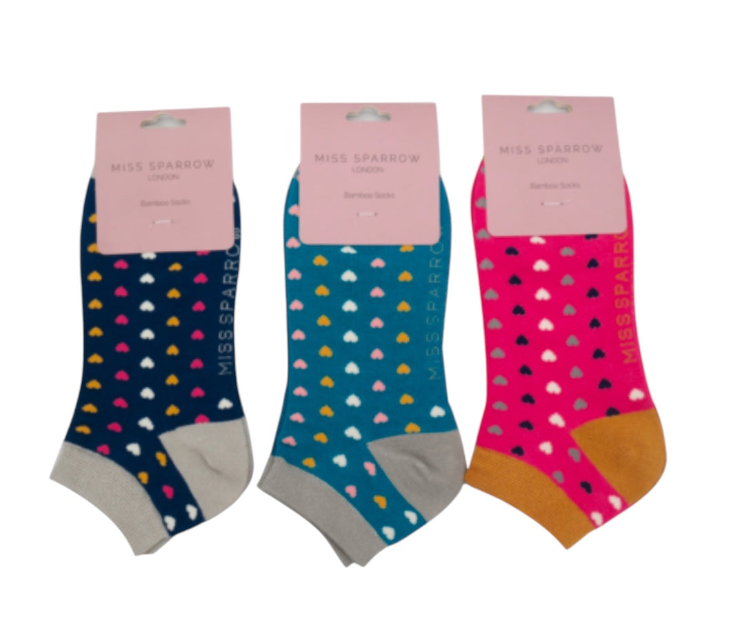 Miss Sparrow SKT012 Hearts Trainer Bamboo Socks (3 Colours)