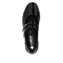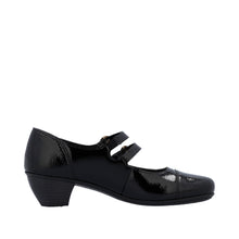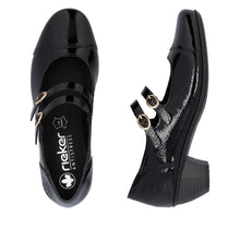Rieker 41758-00 Lagro Black Patent Leather Low Heel Double Strap Mary Jane Style Shoe