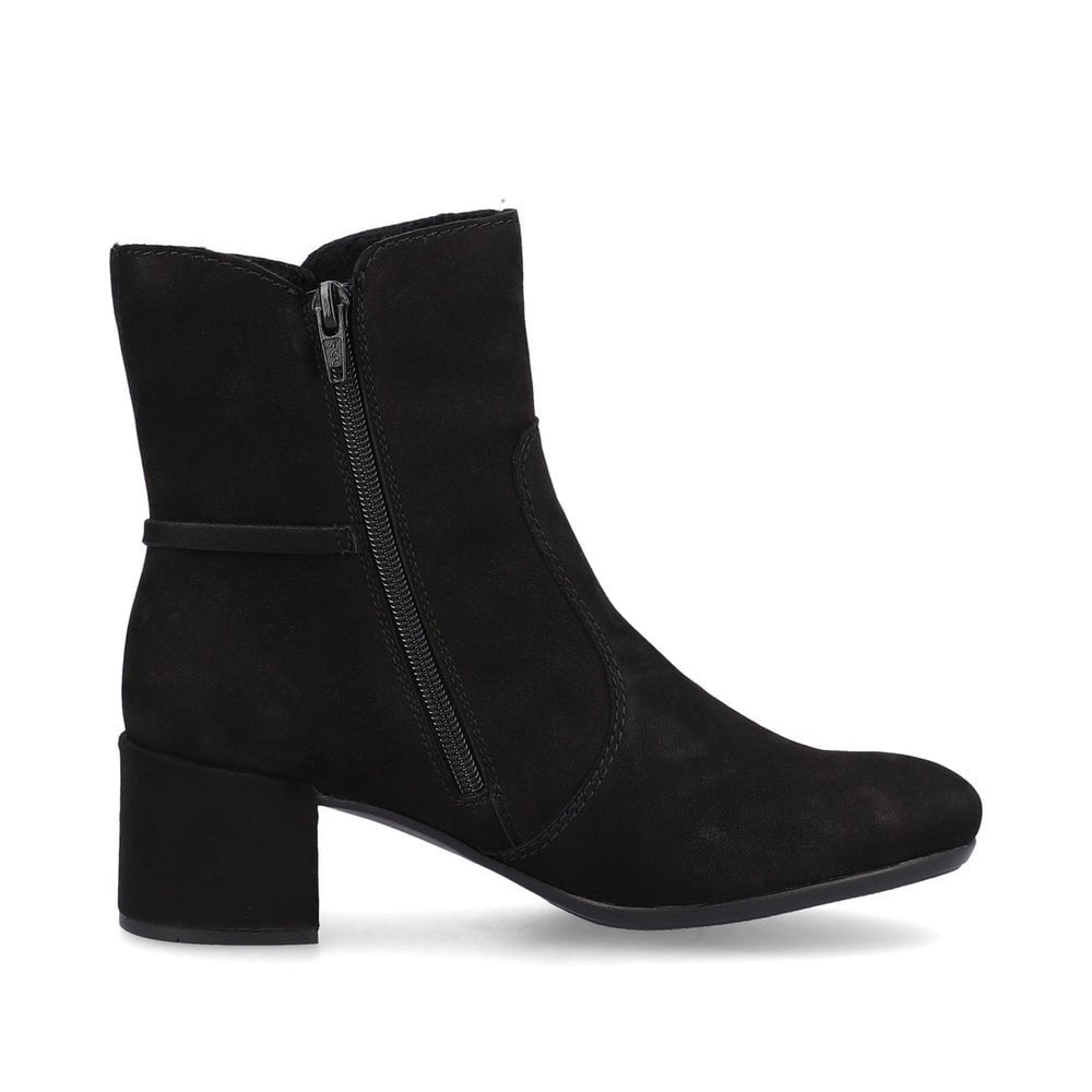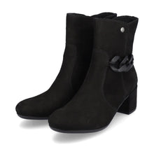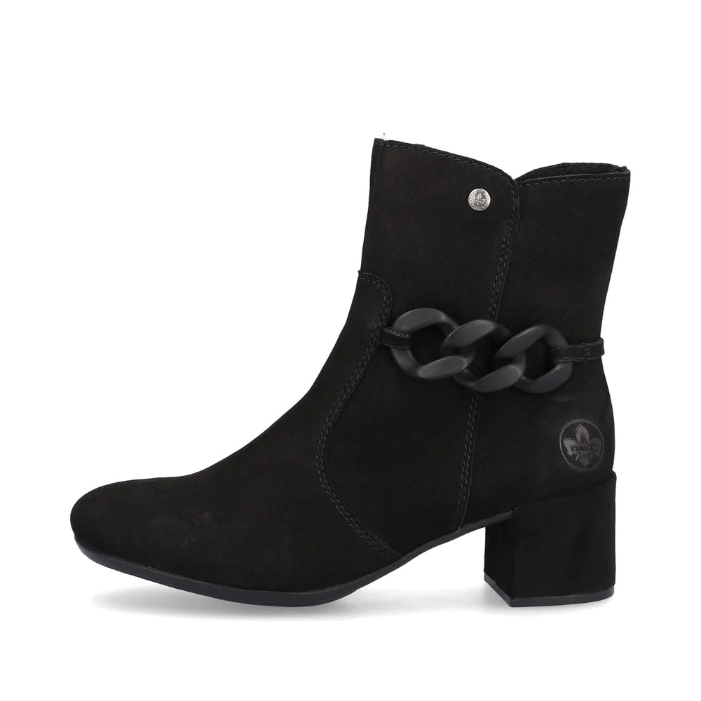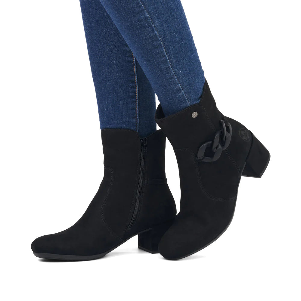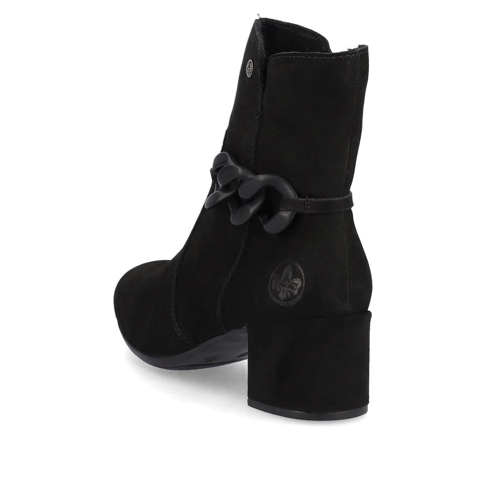 Rieker 70253-00 Black Leather Block Heel Chain Detail Ankle Boots
