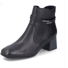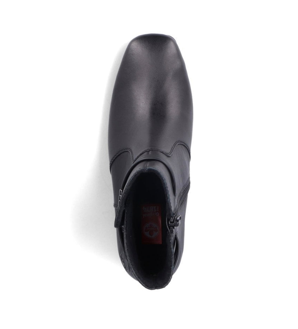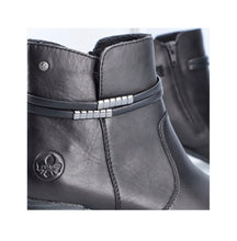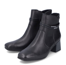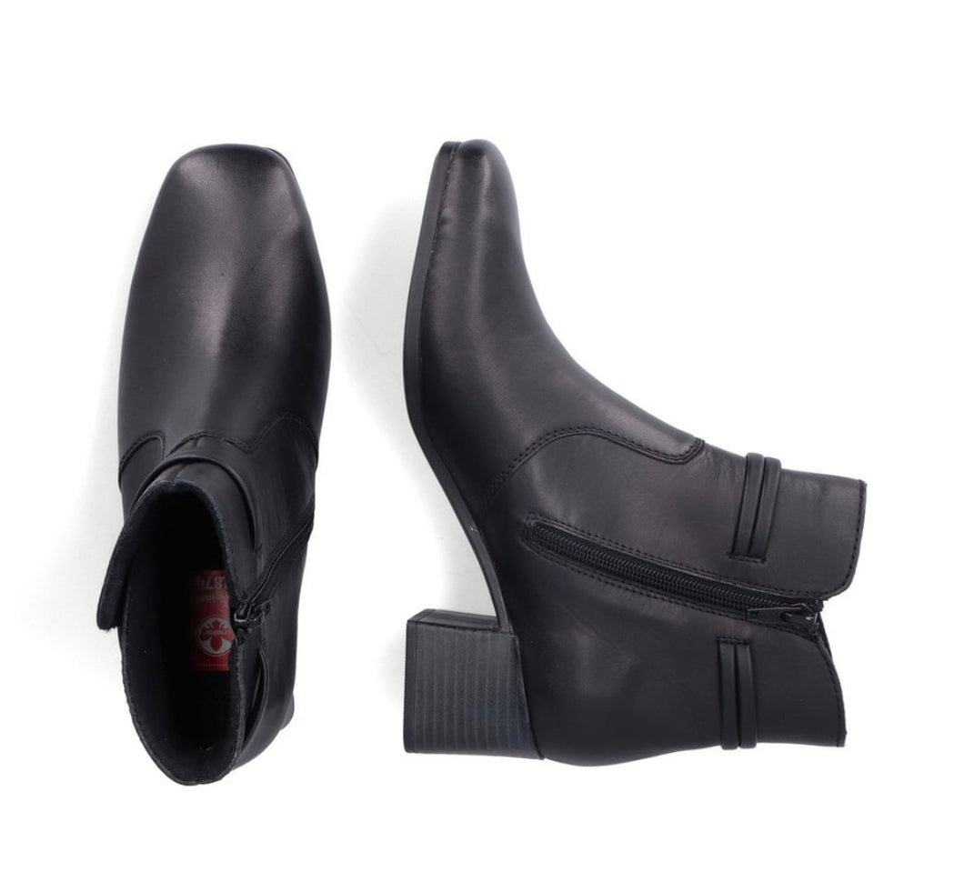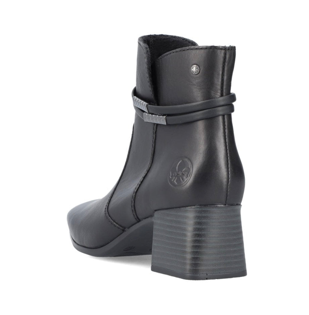 Rieker 70974-00 Minato Black Leather Block Heeled Ankle Boots
