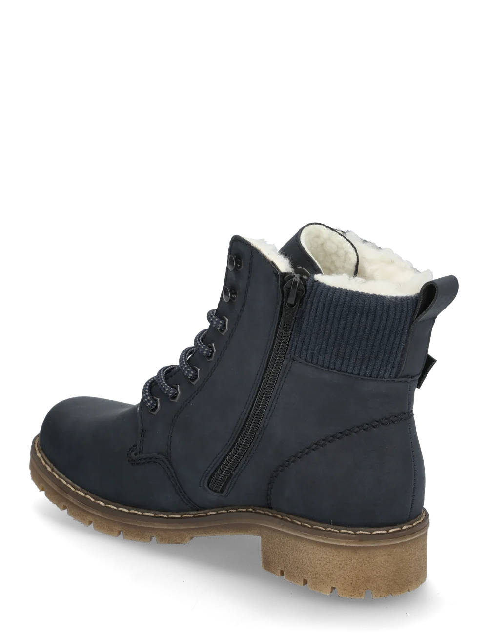 Stylish and comfortable these dark blue Rieker lace-up boots have it all: comfort, function and, of course, style. Made with the stitch down construction, the model is robust, flexible and offers a perfect fit. The clever combination of lacing for the perfect fit and zipper gives optimal support and makes it easy to put on and take off the boot. With the grippy sole, sure-footed walking is a matter of course and the cover sole is extra soft. In wet and cold weather, the feet stay dry thanks to the TEX water-repellent surface, while the warm lining provides the best protection against the cold. Functional and fashionable to brave the cold weather!